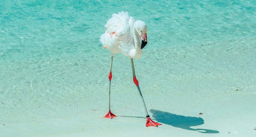 Symbols of romance and vitality, baby white flamingos gradually turn vibrant pink.