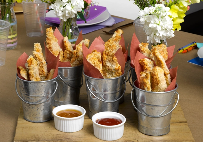 Serve them in little steel buckets for added fun, with a side of plum sauce & ketchup. Pickiest eaters will love!