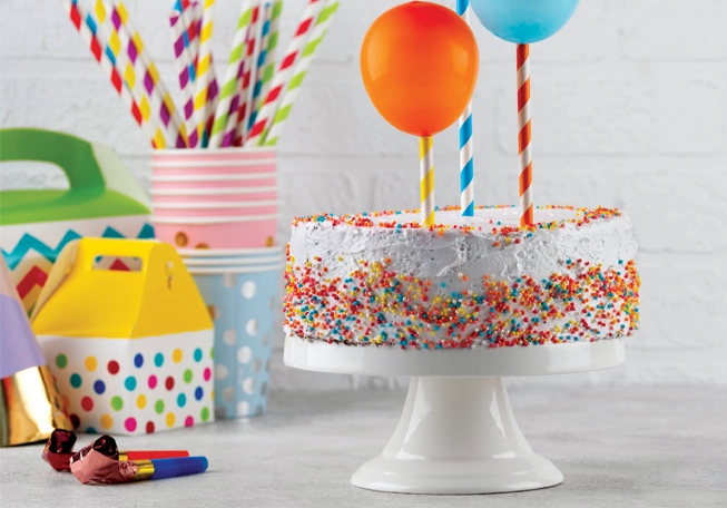 Make any birthday cake a little more whimsical with the help of a few mini balloons and colourful straws!