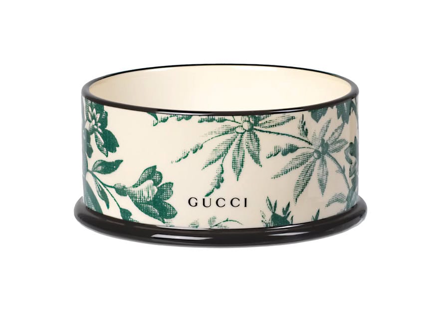 Gucci’s Herbarium Print Pet Bowl is available in a two-sizes in a coveted green and ivory pattern. Sure to make its owner proud. Made in Italy.