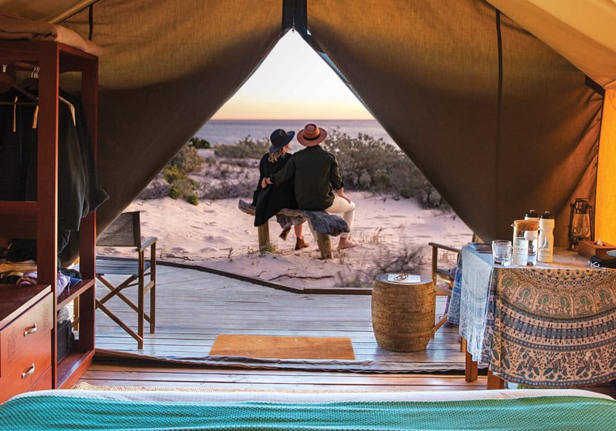 It’s the rarest of places—a hidden safari camp in the white sand dunes of Western Australia’s Cape Range National Park. Sal Salis is twelve hundred