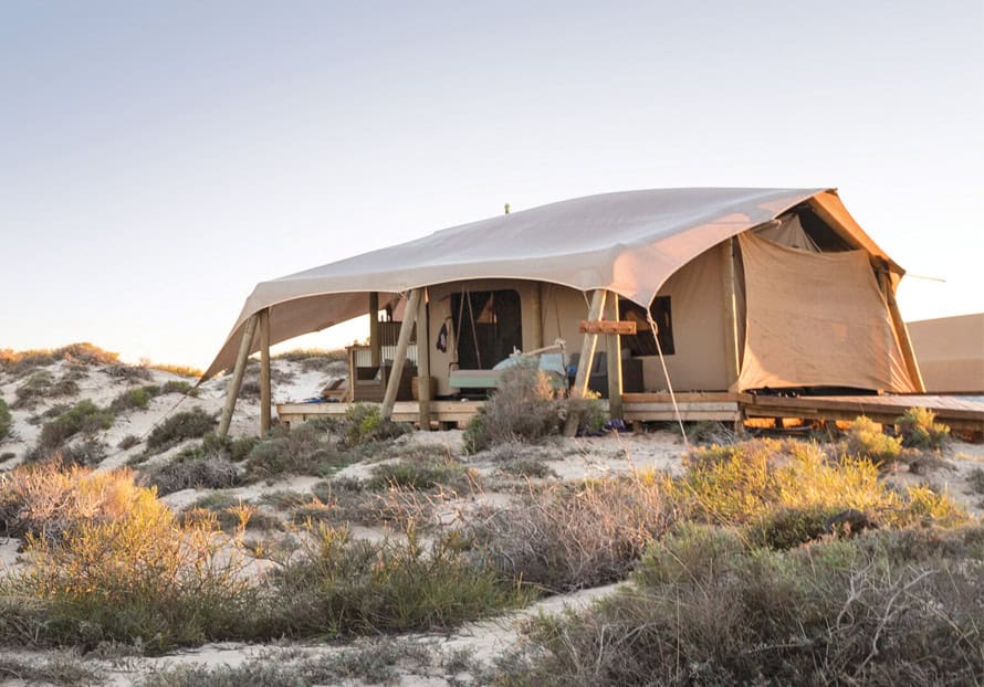 All power is solar generated and water usage is carefully managed. Food is delicious mix of bush food, native produce and chef’s Australian cuisine, served in the vista-friendly main camp building that’s found above the sand and coastal scrub.