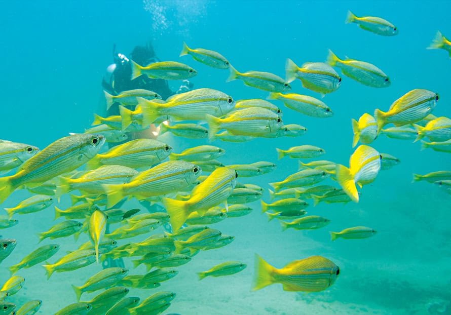 Between April and July, offshore encounters with whale sharks can fill the day while a friendly swim with migrating humpbacks who pass by is possible between July and October.